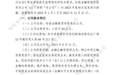 哈銀金融租賃有限責任公司成立于2014年6月,由哈爾濱銀行控股,注冊資本人民幣20億元。